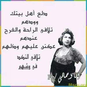 - إذا قلنالها اطبخي بتقول مريضة، بس إذا قلنالها تعي كلي بتقول وين معلقتي العريضة الطول طول نخلة، والعقل عقل سخلة.