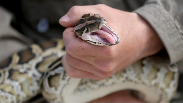 رؤية رأس ثعبان كبير تبلع قدمي للرجل