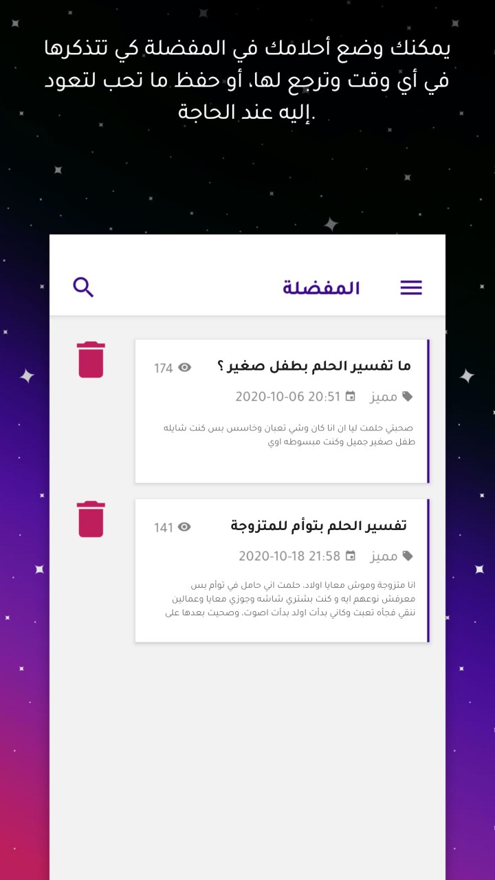 مع تطبيق "فسر حلمك" ستصل بسهولة ويسر إلى مفسر الأحلام الذي تريده دون أن تواجه عناء البحث أو تتعرض للاحتيال فالأمر لا يستغرق سوى دقائق لتحميل التطبيق وبعدها سترى بنفسك كم يحتوي على مميزات رائعة لن تجدها في التطبيقات الأخرى.